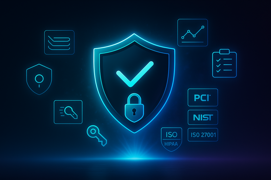 Policy automation, access reviews, audit evidence packs, SIEM/SOC dashboards, incident response runbooks, DLP/EDR/MDR integrations, encryption & secrets management, data retention, vendor risk, and compliance mapping (PCI, NIST, ISO 27001, HIPAA).